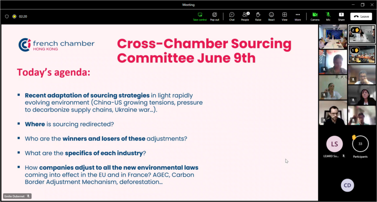 The French Chambers of Commerce in Hong Kong, Singapore, Vietnam and India, jointly organised a Cross-Chamber Session on Readjustment of Sourcing Strategies to address Geopolitical Instability on 9th June 2023 in a virtual format.