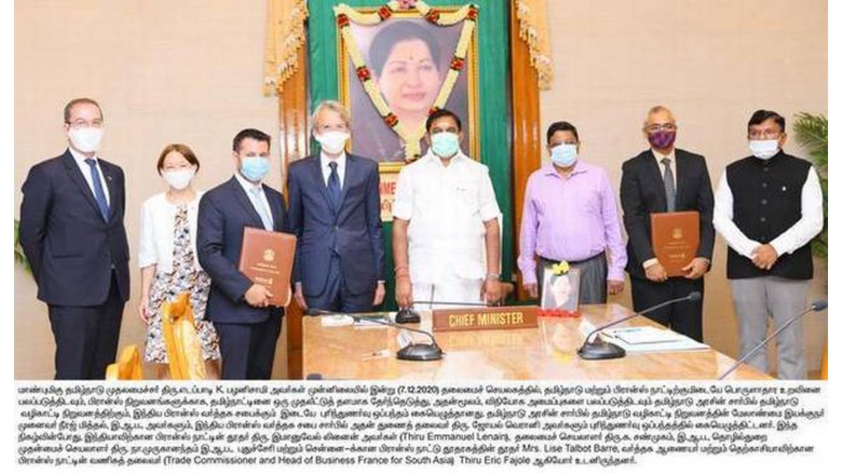 The MoU was aimed at establishing a framework to facilitate connections between French businesses and Tamil Nadu, enabling investments and promoting ease of doing business. Chief Secretary K. Shanmugam and senior officials were also present.