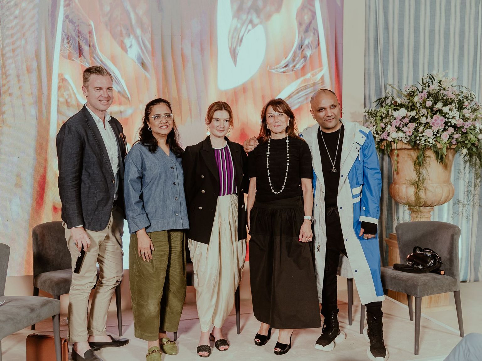 Beyond the exhibition floor, a conference highlighting "Creative Dialogue" was organized by the French Institute in India where renowned heritage companies, such as Féau, Mathieu Lustrerie , and Lesage, world-renowned French and Indian architect studios like Wilmotte & Associés, represented by its CEO Borina Andrieu, Morphogenesis and its founder Sonali Rastogi, Jean-Louis Deniot, and Aparna Kaushik, as well as promising French designers who are committed to working with great craftsmanship such as RoWin Atelier (a duo composed of Hervé Winkler and Frédéric Rochette), Hugo Besnier, and other key opinion leaders of the industry, and the creative sector like designer Gaurav Gupta. Mobilier National and its representatives participated in the discussions and shared examples of mixing traditional "savoir-faire" and contemporary creation.