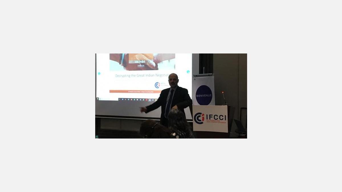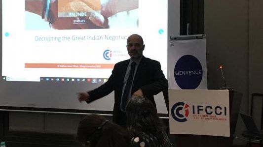 Following Ms. Sunita’s talk, Mr. Mathieu Jouve-Villard, India Country Manager, CIC-Crédit Mutuel, gave a presentation on his book “Practical Guide to Negotiating in India” and touched upon the various aspects to consider while doing business in India. Drawing on his experience in India of more than 15 years, Mr Mathieu helped give a new dimension to understanding business strategies to be considered in foreign land.