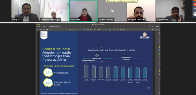 Moving ahead, Ms. Varda Taneja, Senior Assistant VP, Invest India delivered Special Remarks and gave an extensive presentation by highlighting the Key Trends, Impact of COVID on various sectors like Technology, Health & wellness and different purchases of made in India products; prominent in food and personal care categories
