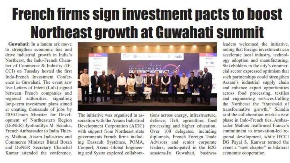 French firms sign investment pacts to boost Northeast growth at Guwahati summit