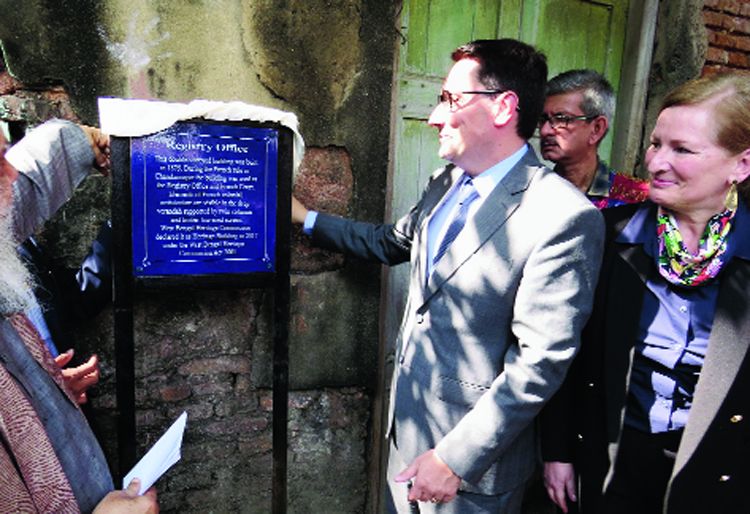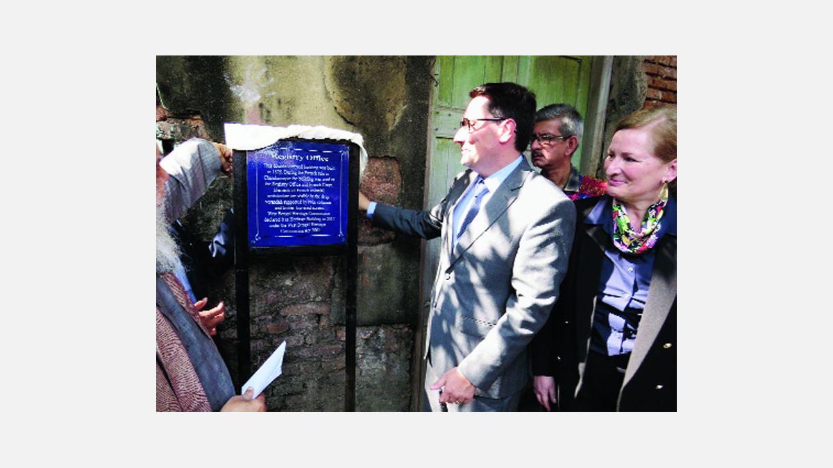 French ambassador Alexandre Ziegler unveiled plaques declaring three buildings in Chandernagore heritage structures on Wednesday.