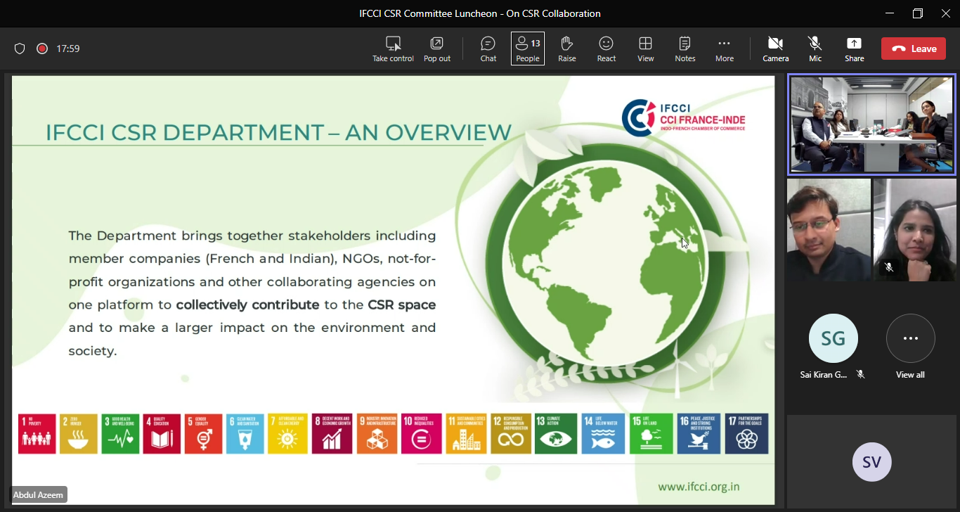 - CSR Heads from several French companies were a part of the meeting and shared their focus areas of work for this year, some of their key CSR projects alongwith the interest to collaborate with other like-minded member companies on this front.