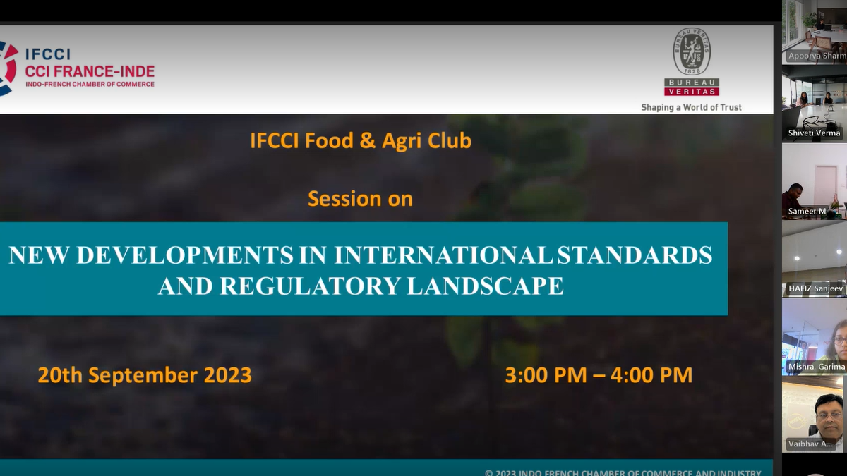 The Food & Agri Club of Indo-French Chamber of Commerce & Industry (IFCCI) organized its first Session on the New Developments in International Standards and Regulatory Landscape affecting the Food, Beverages and Feed sector, on 20th September 2023.