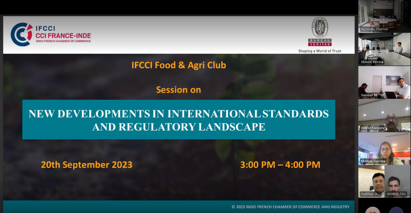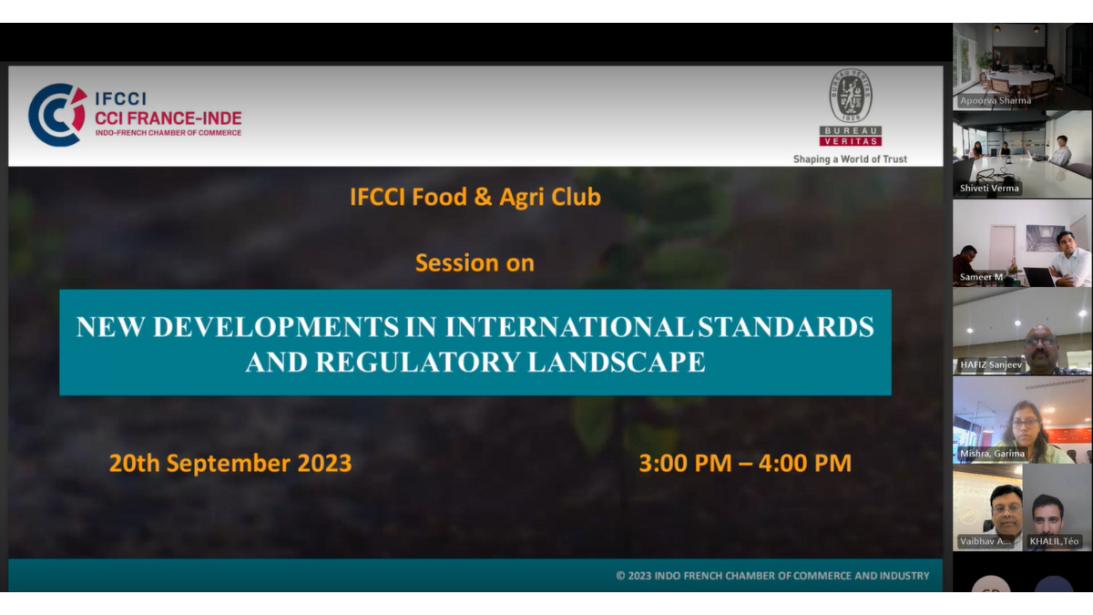 The Food & Agri Club of Indo-French Chamber of Commerce & Industry (IFCCI) organized its first Session on the New Developments in International Standards and Regulatory Landscape affecting the Food, Beverages and Feed sector, on 20th September 2023.