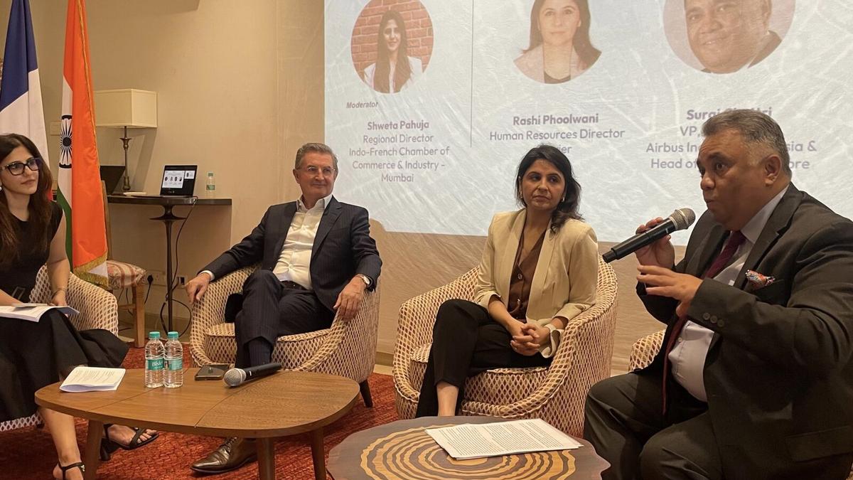 An informative Panel Discussion, moderated by Ms. Shweta Pahuja, Regional Director – West, IFCCI along with our esteemed panelists- Mr.Franck Passillier , Senior Country Officer, Crédit Agricole CIB India, Mr. Suraj Chettri, VP, Head of HR, Airbus India & South Asia & Head of Site – Bangalore and Ms. Rashi Phoolwani, Human Resources Director, Servier India.