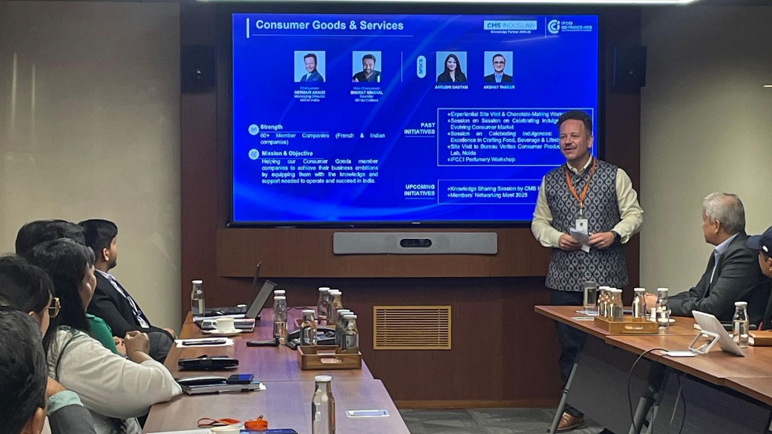 Hosted by ICICI Bank, the discussion saw active participation from member companies with key insights shared by the Committee Chairperson, Mr. Germain Araud, Managing Director, Monin, along with Mr. Santosh Pai, Multinational Clients Head, Mr. Manish Kumar, CSR & Sustainability Head and Mr. Ashish Halder, Analyst - Economic Research from ICICI Bank.
