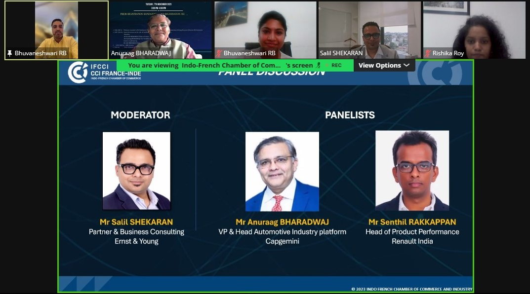 Indo-French Chamber of Commerce & Industry (IFCCI), under the aegis of its Mobility Committee organised a virtual Session on Future of Indian Mobility: Gear 1- Artificial Intelligence, on 7th November 2023.