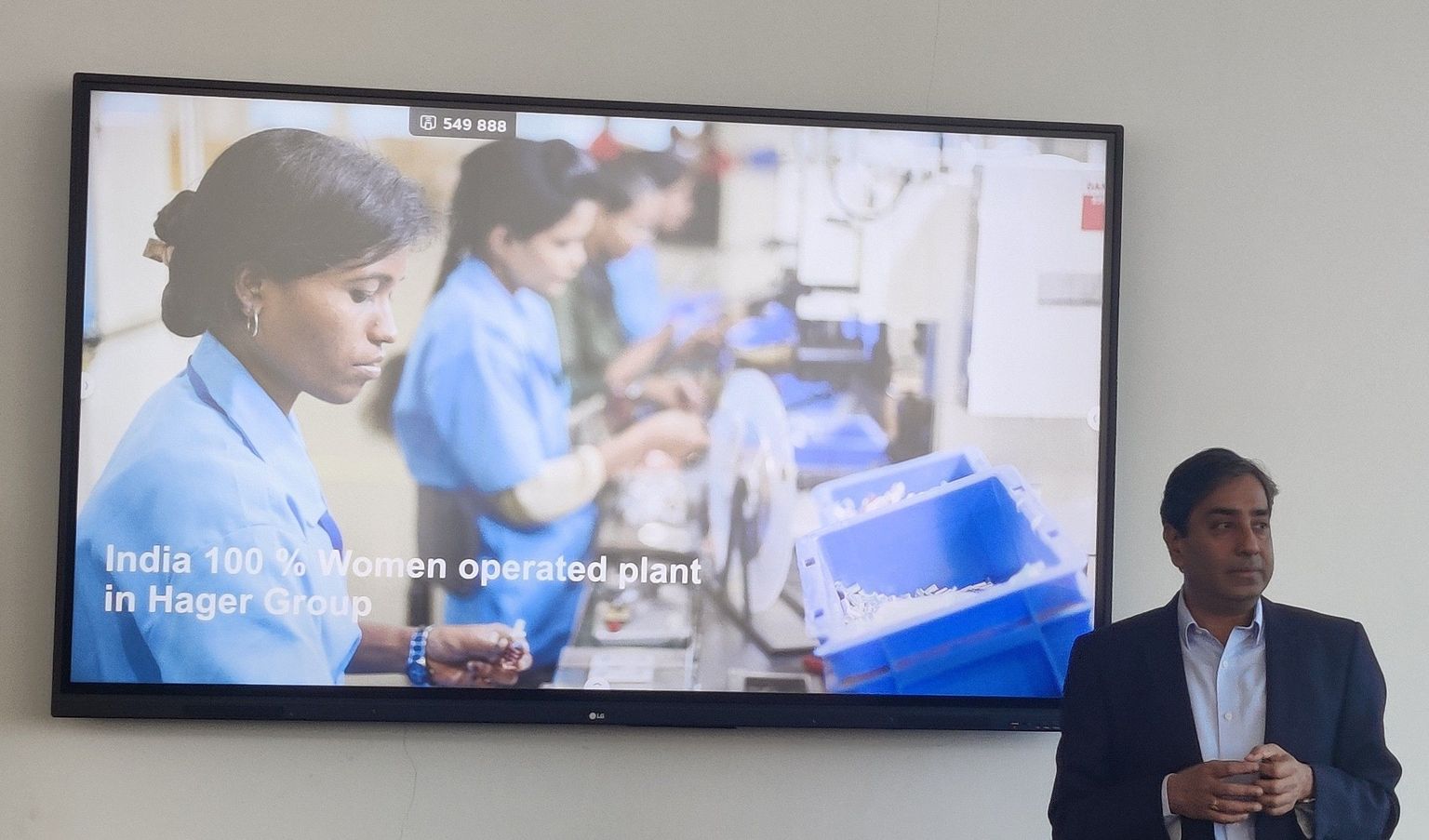 Mr. Atulya Chandra, MD & Country Manager, Hager Electro presented the manufacturing process at Hager which is efficiently run by their women workforce. He highlighted the measures taken up by Hager to achieve zero accidents in the factory and to ensure the safety and well-being of their employees. He emphasized on the fact that their India facility is 100% women operated plant and also shared some of the challenges witnessed by women in manufacturing.