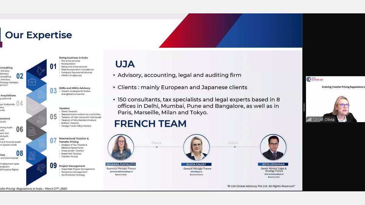 The Indo-French Chamber of Commerce and Industry(IFCCI), Pune in association with UJA Global Advisory is organized a webinar on Evolving Transfer Pricing Regulations in India on Thursday, 27th March 2025.