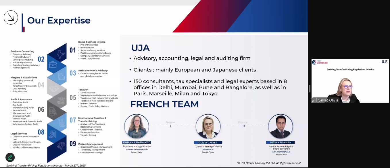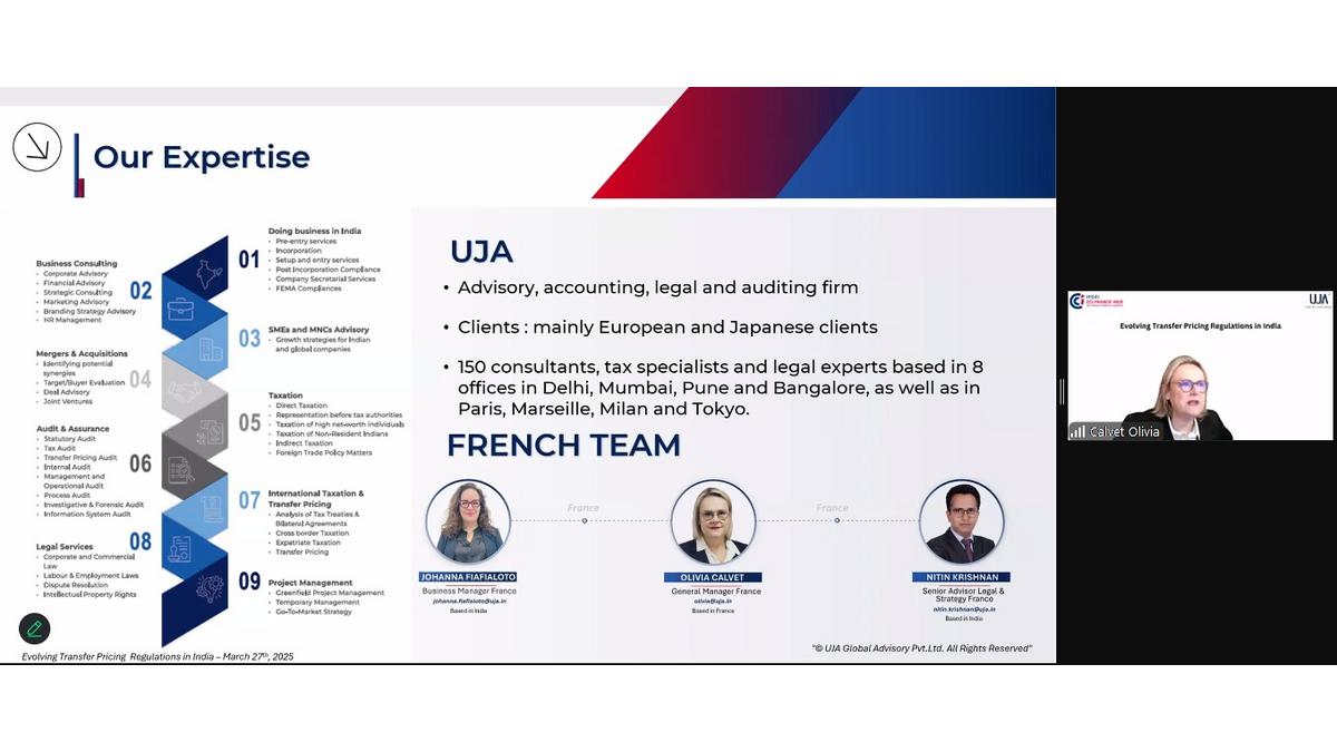 The Indo-French Chamber of Commerce and Industry(IFCCI), Pune in association with UJA Global Advisory is organized a webinar on Evolving Transfer Pricing Regulations in India on Thursday, 27th March 2025.