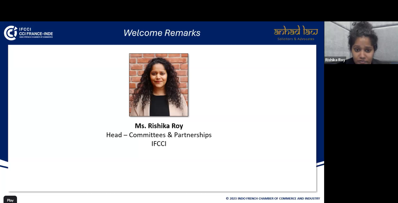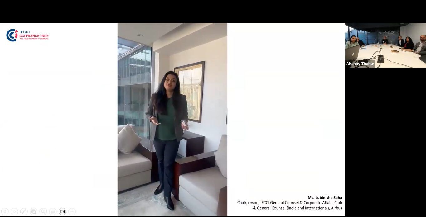 Ms. Rishika Roy, Head - Committees & Partnerships at IFCCI, while welcoming the participants, gave an overview of IFCCI and the various committees, with a specific mention about this Club which is a group of 30+ General Counsels, Legal Heads and Corporate Affairs Heads of Indian and French companies.