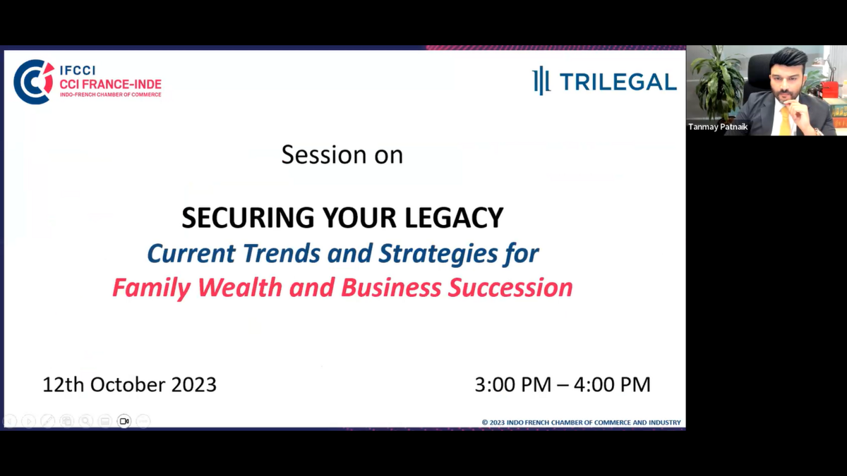 Indo-French Chamber of Commerce & Industry (IFCCI), in association with Trilegal, organized a virtual Session on 'Securing Your Legacy: Current Trends and Strategies for Family Wealth and Business Succession' on 12th October 2023.