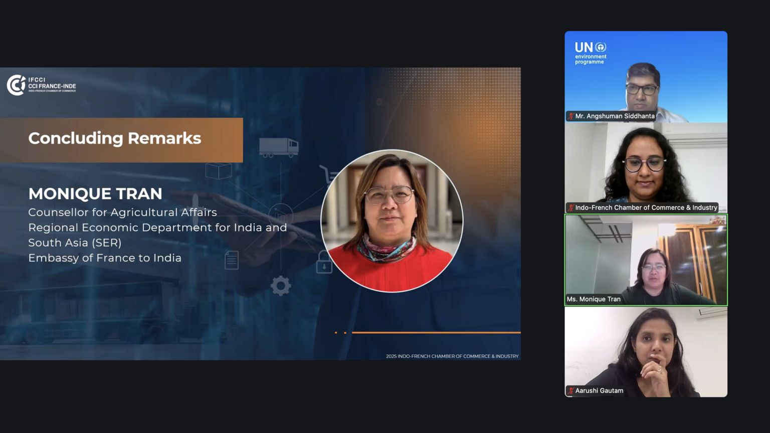 The session concluded with a Q&A session and closing remarks by Ms. Monique Tran, Counsellor for Agricultural Affairs, Regional Economic Department for India and South Asia (SER), Embassy of France to India.