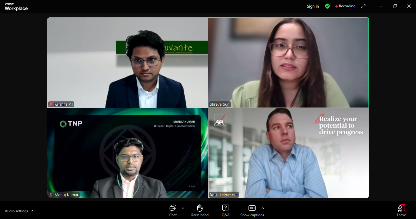 Mr. Boris Leinweber, Head of Industrial Automation at AXA GBS described the dramatic shift from traditional communication to today’s AI-integrated tools. He emphasized that tools like RPA and ChatGPT are transforming everyday tasks, while ongoing training is key to keeping pace with these changes.