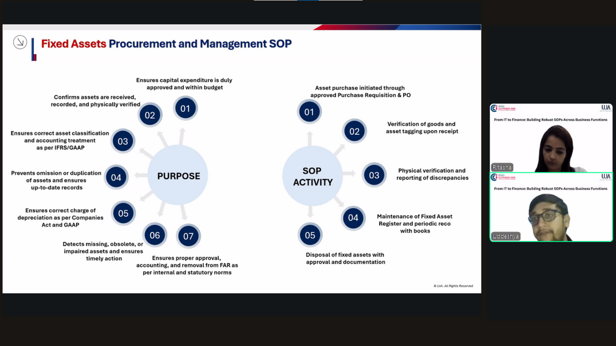 The keynote presentations were delivered by Ms. Ritasha Talwar, Senior Partner, UJA Global Advisory, and Mr. Uddeshya Kumar, Assistant Manager, UJA Global Advisory. They provided valuable insights into designing and implementing SOPs to streamline operations and strengthen internal governance within organisations. The discussion covered the following key areas: