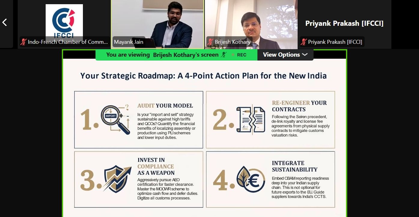 The Indo-French Chamber of Commerce & Industry (IFCCI), in association with Khaitan & Co., successfully hosted a virtual knowledge session titled “GST & Customs Playbook 2025–26: Key Considerations for Indo-French Businesses in India” on 27 November 2025.