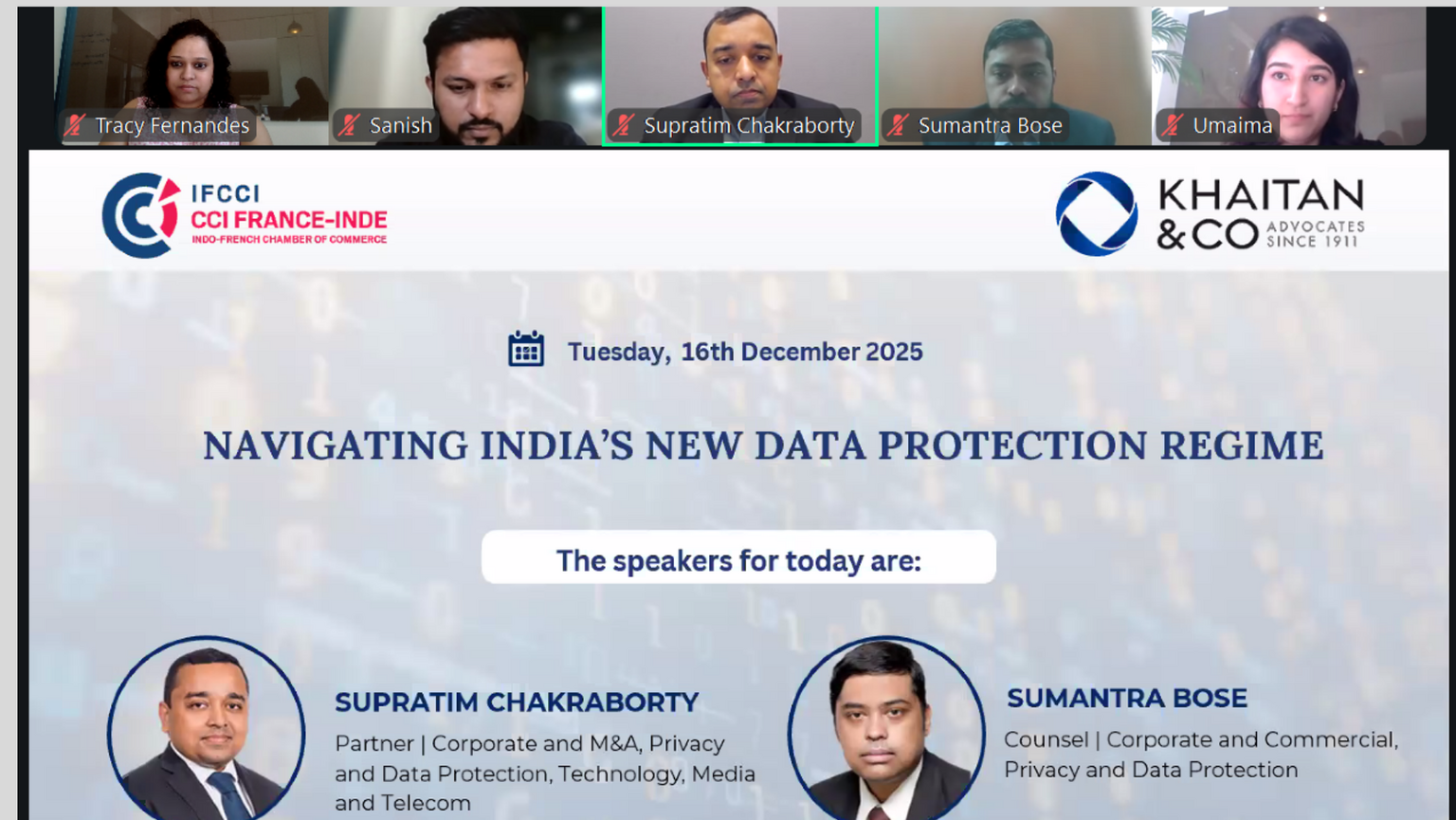 The Indo-French Chamber of Commerce & Industry (IFCCI), in association with Khaitan & Co, organised a webinar on “Navigating India’s New Data Protection Regime (DPDP Act 2023)” on 16th December 2025.