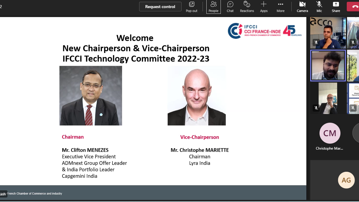 The meeting started with a quick background on the IFCCI Committees by Ms. Rishika Roy, Head – Committees & Partnerships. Thereafter, Mr Priyank Prakash, Senior Manager - Events & Membership (KA, TS & AP REGIONS) and SPOC for the IFCCI Technology Committee welcomed the new leadership of the committee: Chairperson Mr Clifton Menezes, Executive Vice President, ADMnext Group Offer Leader & India Portfolio Leader Capgemini India; and Vice-Chairperson Mr Christophe Mariette, Chairman, Lyra India.