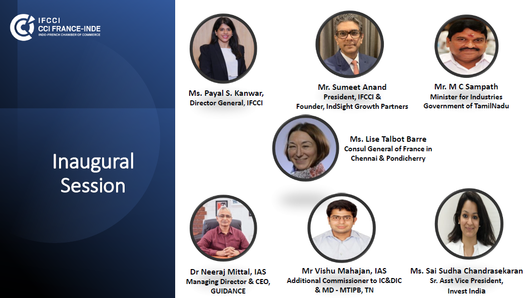 The Event was supported by the Government of Tamil Nadu, Embassy of France in India, Consulate of France in Chennai & Pondicherry, ELCOT, M-TIPB, Business France, Guidance, Invest India & CII and was attended by Senior Govt officials, Indian National and State authorities, policymakers, top private sector players from India and France, multilateral agencies and eminent industry experts.