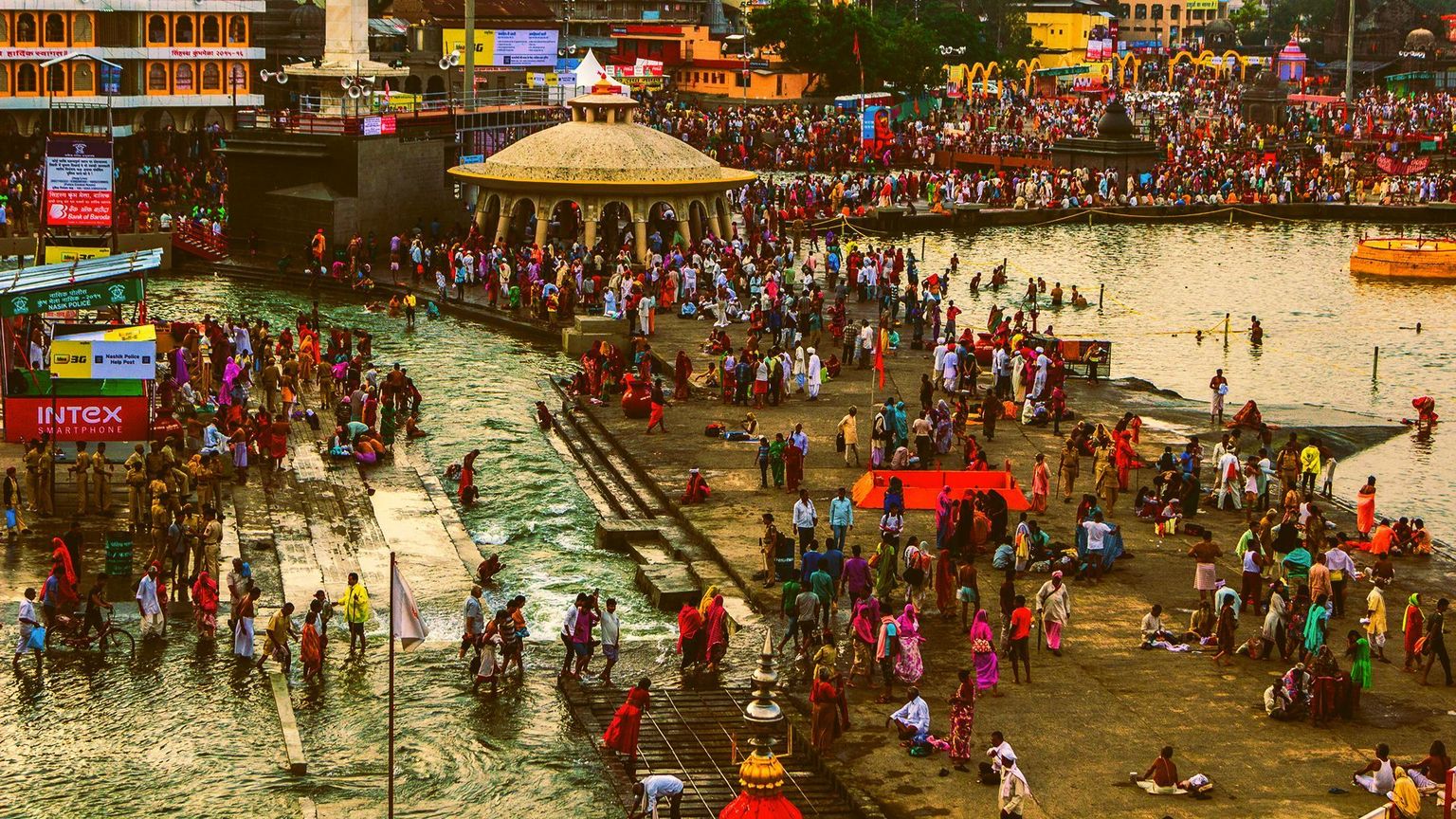 The geographical location of Kumbh Mela covers four locations in India with the mela site rotating from Haridwar (Uttarakhand) on the Ganga, Ujjain (Madhya Pradesh) on Shipra, Nashik (Maharashtra) on Godavari to Prayagraj at the confluence of the Ganga, the Yamuna, and the mythical Saraswati.