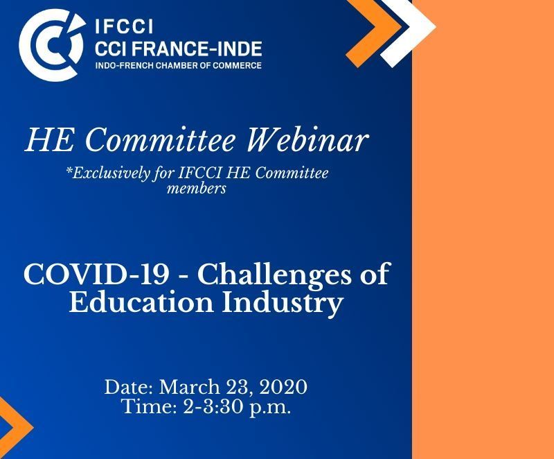 The Indo-French Chamber of Commerce and Industry (IFCCI) under the aegis of the IFCCI HE Committee organised a webinar for the members to understand the challenges faced by the Education Industry in times of covid19. The French and Indian schools shared their issues related to admissions, cancellation/postponement of exams, drop in summer internship opportunities, student mobility which have been impacted adversely.