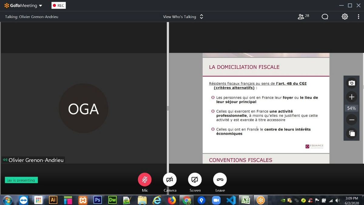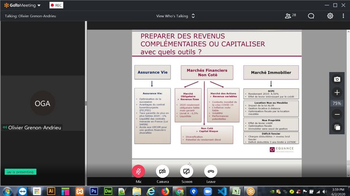 Mr. Grenon-Andrieu began the webinar with a brief introduction of Group Equance followed by a focus on the essentials of Wealth Management, Taxation, Matrimonial Law, Inheritance and Health.
