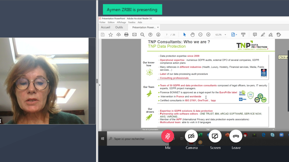 Ms. Florence Bonnet, data protection expert, proceeded the session with introduction of TNP being a performance leader, French independent consulting firm and its role in Cyber security and data protection and risk compliance.