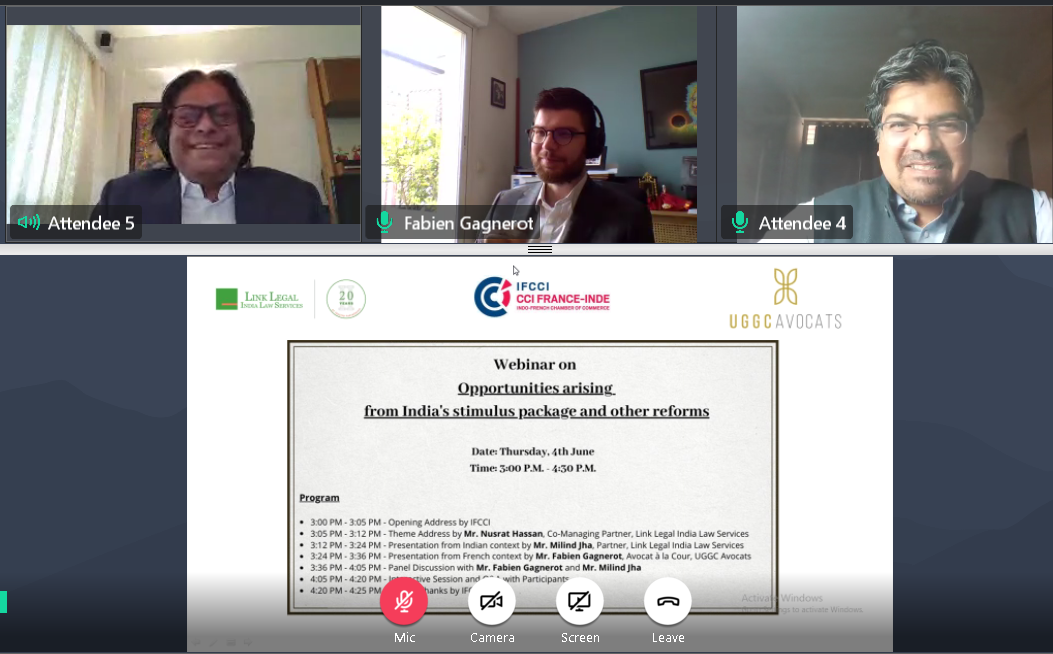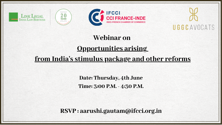 IFCCI in association with Link Legal India Law Services and UGGC Avocats organized a Webinar on Opportunities arising from India’s Stimulus Package and other reforms on Thursday, 4th June 2020.