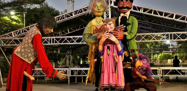 One of the cheeky male puppets even handed out a flower to a young woman in the audience. As the show began to unfold, it looked like Karna, a majestic-looking male, and Kanchana, a spirit-woman, were parents to Chinna, a young boy.