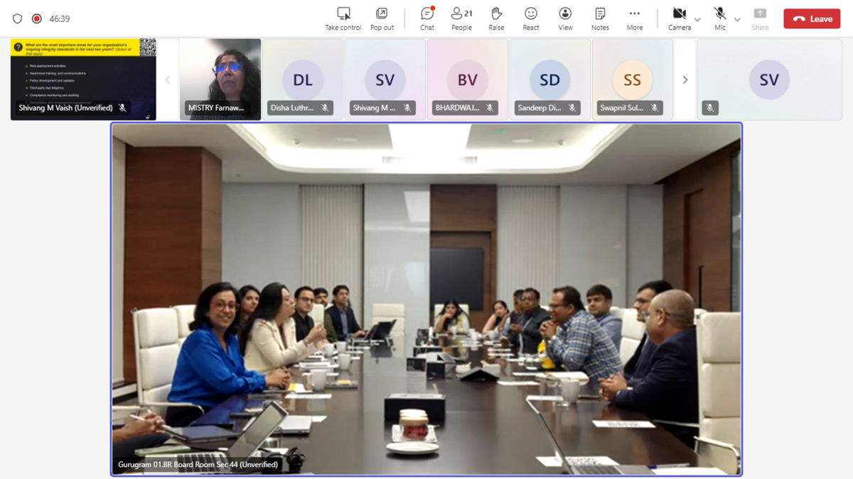 Mr. Sushant Jain, Director, EY Forensic & Integrity Service, Mr. Mayank Garg, Director, EY Forensic & Integrity Service and Mr. Swapnil Sule, Director, EY Forensic & Integrity Service took the members through the scope of technology intervention, use of digital tools and AI to improve the monitoring and business processes.