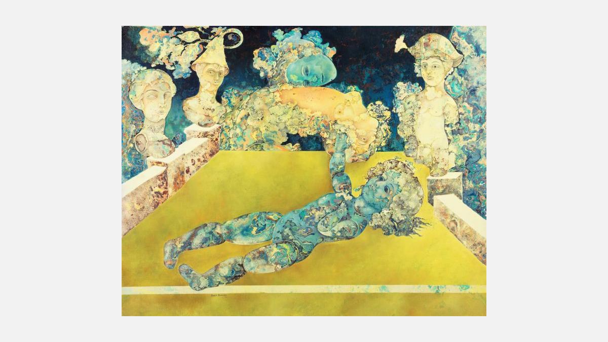 In addition to paintings, the exhibit showcases sculptures from the legendary Prodosh Dasgupta, who was pivotal in forming India’s first ensemble of modern artists after returning from London and Paris in 1943. Inspired heavily by expressionists, he developed a fluid abstract style that conveyed his deep interest in Eastern philosophy. DAG features notable works in bronze, such as “Nest” (1975), “Halves” (1979) and “Genesis I” (1971), which mark his style of containing abstract ideas within the roundedness of his trademark ovoid shapes.