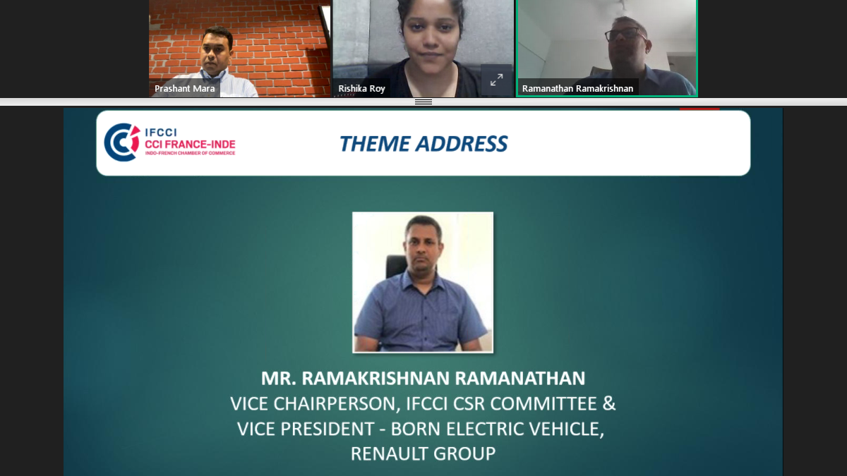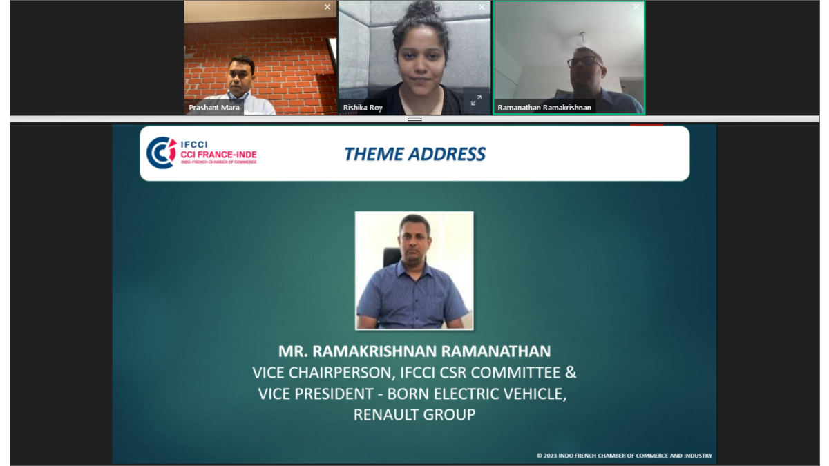 Mr. Ramakrishnan Ramanathan, Vice Chairperson, IFCCI CSR Committee & Vice President - Born Electric Vehicle, Renault Group, while setting the context, talked about the difference between CSR and ESG and the key scoring parameters, sharing some industry-specific examples. He also enlightened the participants about Renault’s target of Net Zero Emissions by 2030 in Europe and by 2040 Globally.