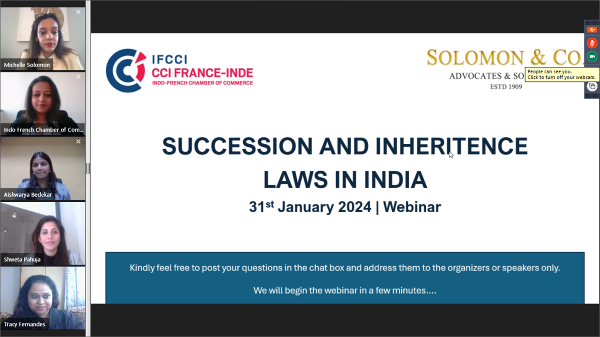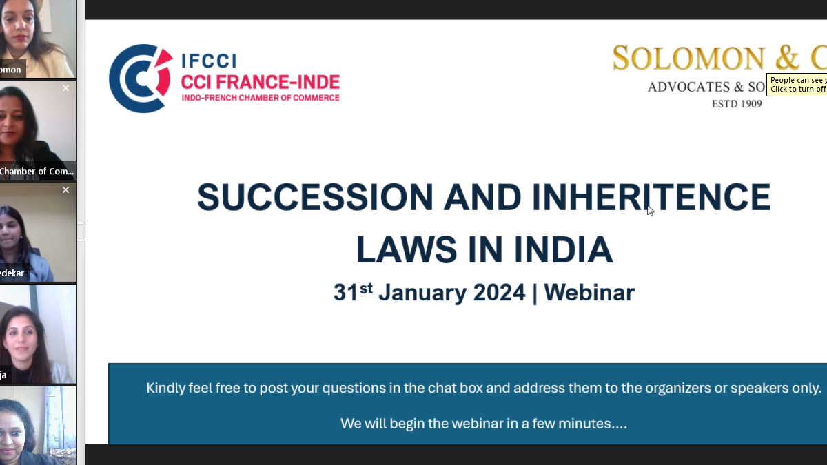 Indo-French Chamber of Commerce & Industry (IFCCI), in association with Solomon & Co., organized a Webinar on 'Succession & Inheritance Laws in India' on 31st January 2024.