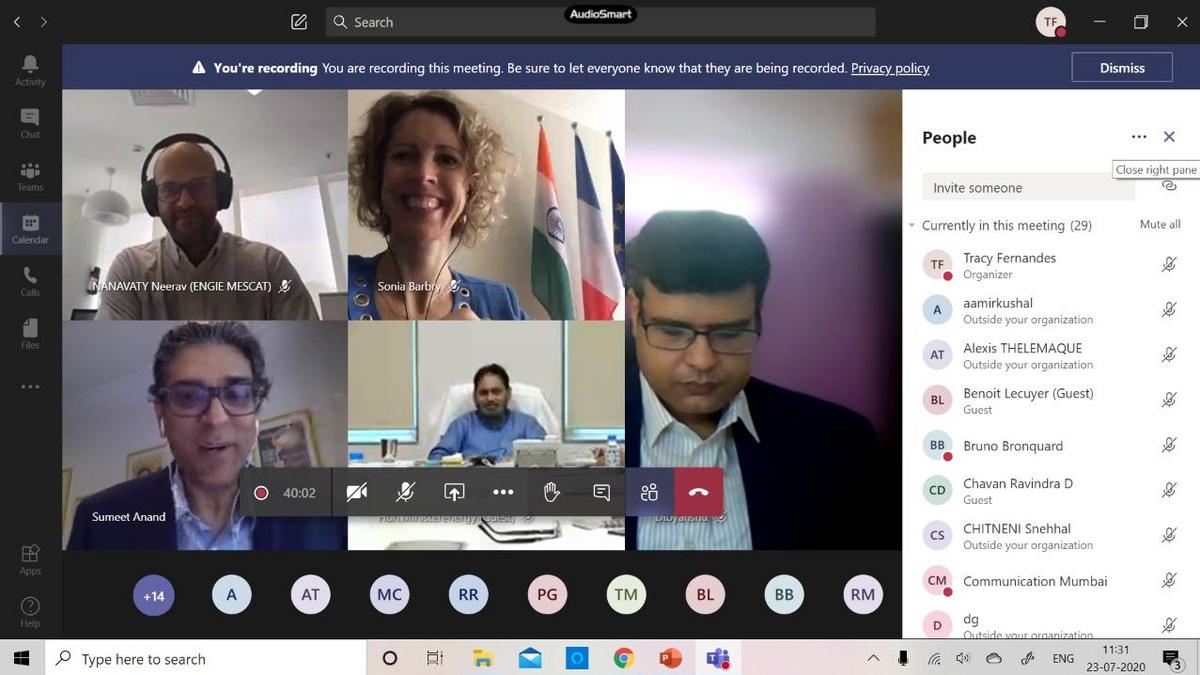 Ms. Barbry acknowledged the presence of the Hon’ble Mr. Nitin Raut as well as that of Khaitan & Co and thanked them for the whitepaper. She spoke of the areas of interest this engagement will hold in hydro and solar projects. She thanked the Government of Maharashtra for providing this opportunity to French companies to express their views about some matters that are relevant for them to develop, operate and grow in India in renewable energy.