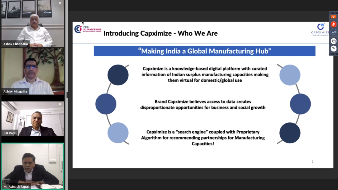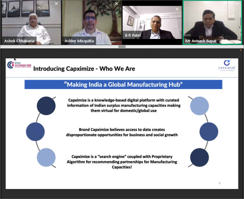 Mr. Bruno Bronquard, Regional Director, IFCCI welcomed the participants and Speakers for the Session. Mr. Avinash Bapat, Founder, Capximize India, set the context for the webinar’s initiative for its members on sharing knowledge on the new way of co-manufacturing and access.