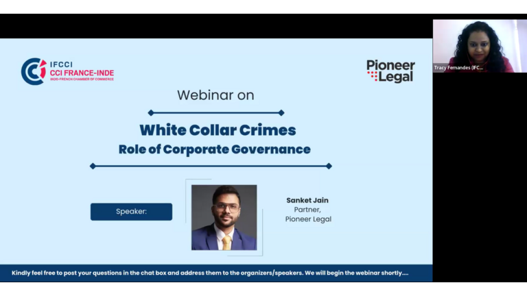 IFCCI Mumbai in collaboration with Pioneer Legal, organised a webinar on Corporate Governance and White Collar Crimes