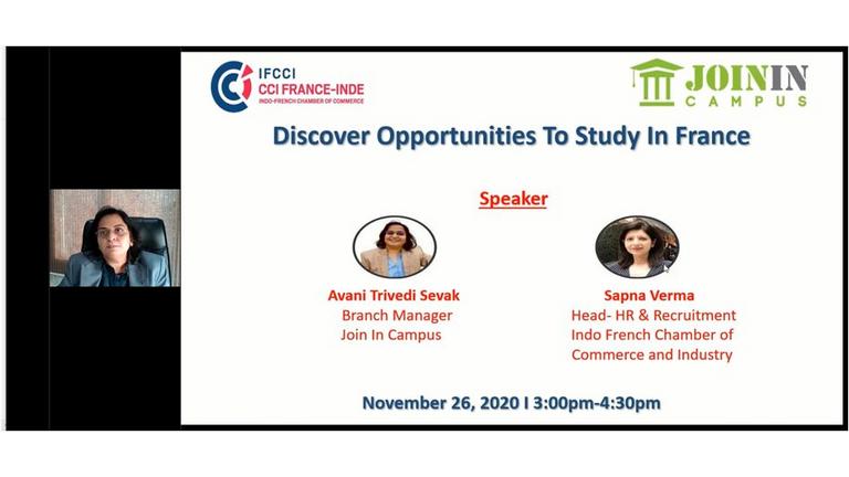 IFCCI in association with Join In Campus organized a webinar on "Discover opportunities to Study in France" on November 26, 2020.