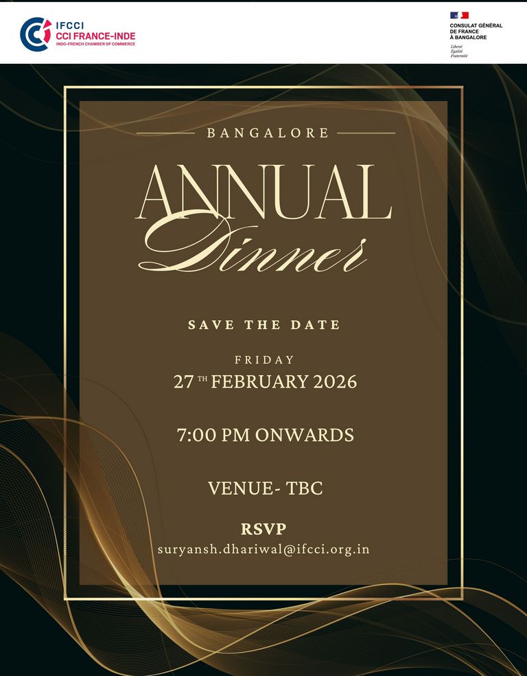 IFCCI, in partnership with the Consulate General of France in Bangalore, is hosting the IFCCI Annual Dinner Bangalore at the Four Seasons.