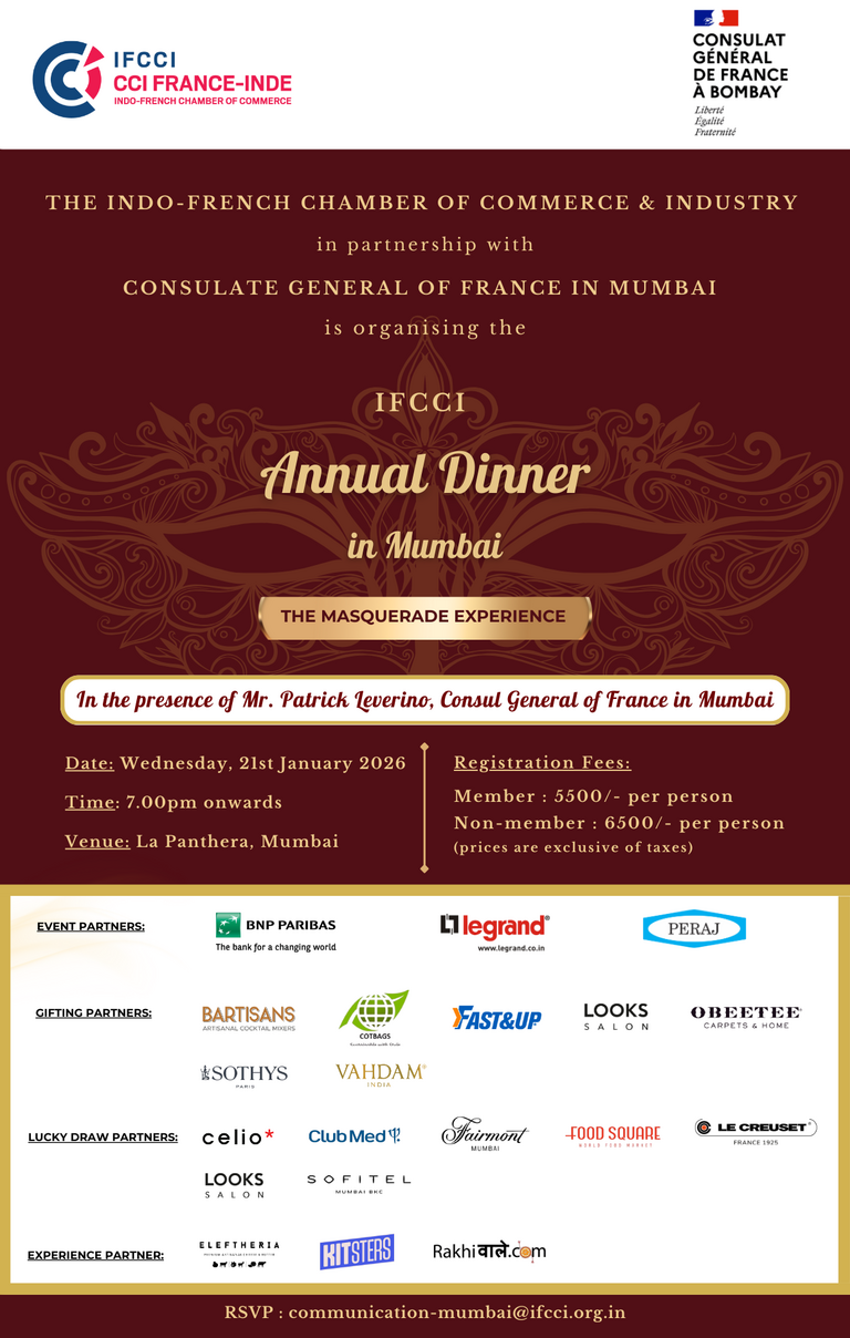 IFCCI, in partnership with the Consulate General of France in Mumbai is organising the IFCCI Annual Dinner in Mumbai on Wednesday, 21st January 2026.