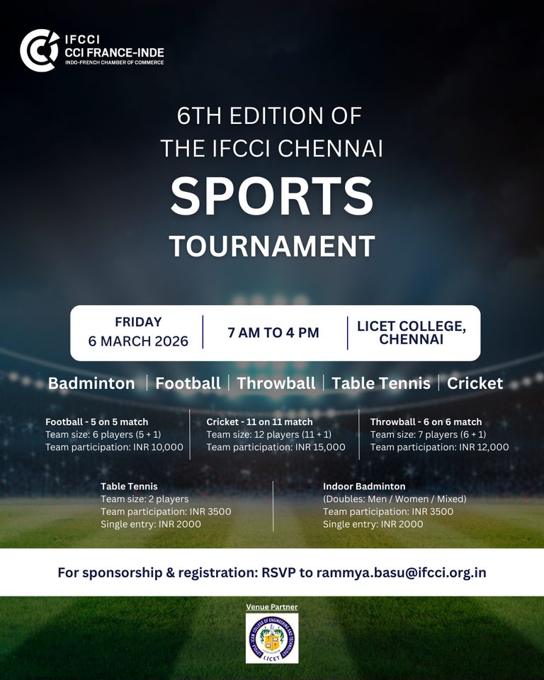 IFCCI is organizing the 6th edition of the IFCCI Chennai Sports Tournament