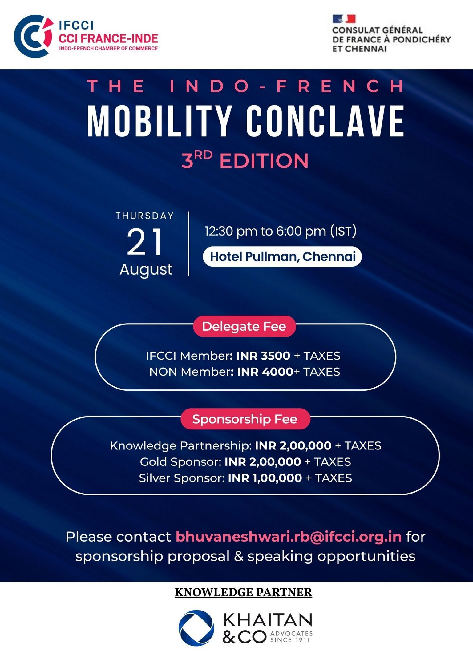 The Indo French Chamber of Commerce & Industry (IFCCI) under the aegis of its Mobility committee is organizing the 3rd Editon of its flagship Indo-French Mobility conclave on 21st August, 2025 at Pullman, Chennai.