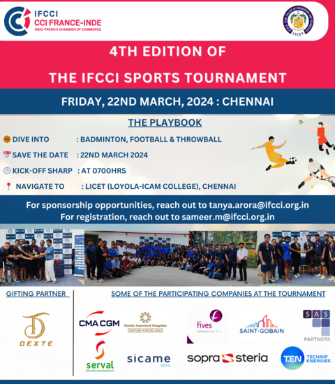The Indo-French Chamber of Commerce and Industry is organizing the 4th edition of the IFCCI Sports Tournament on Friday, 22nd March 2024.