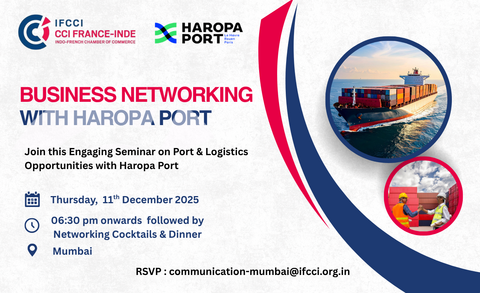 IFCCI in collaboration with Haropa Port is organising a Business Networking event on Thursday, 11th December 2025 in Mumbai. Don't miss this Engaging Seminar on Port & Logistics Opportunities