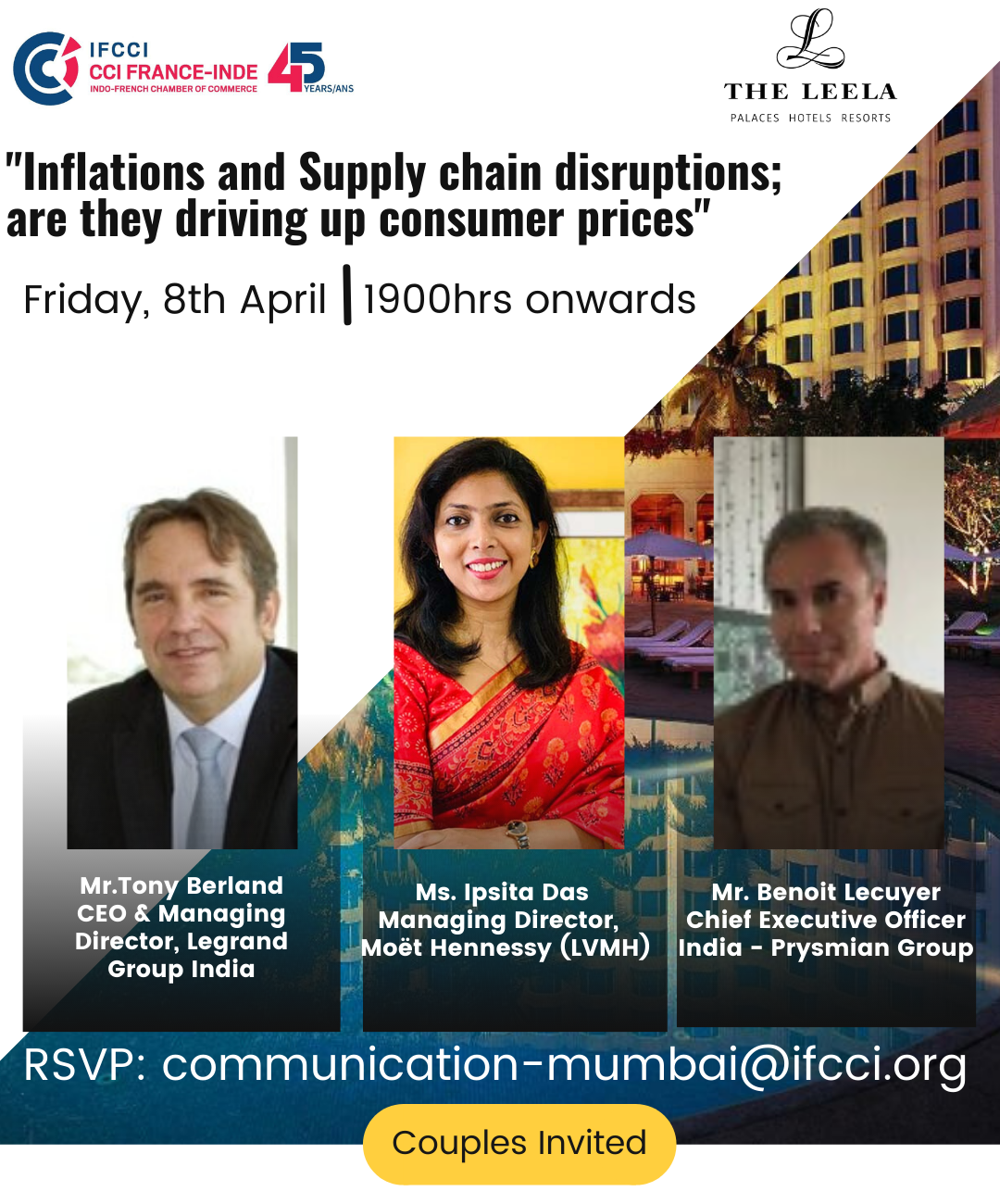 This event will shed light on the topic "Inflation and supply chain disruptions; are they driving up consumer prices". Business experts from the Indo-French community will share their views and ideas on this topic during this session.