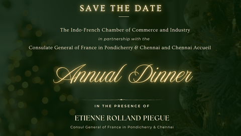 The Indo-French Chamber of Commerce & Industry (IFCCI) is pleased to announce the most anticipated networking event of 2025, the IFCCI Chennai Annual Dinner, to be held on Friday, 5th December 2025 at Ashvita’s Art Gallery, RK Salai, Chennai, from 7:00 PM onwards.