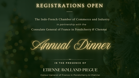 The Indo-French Chamber of Commerce & Industry (IFCCI) is pleased to announce the most anticipated networking event of 2025, the IFCCI Chennai Annual Dinner, to be held on Friday, 5th December 2025 at Ashvita’s Art Gallery, RK Salai, Chennai, from 7:00 PM onwards.