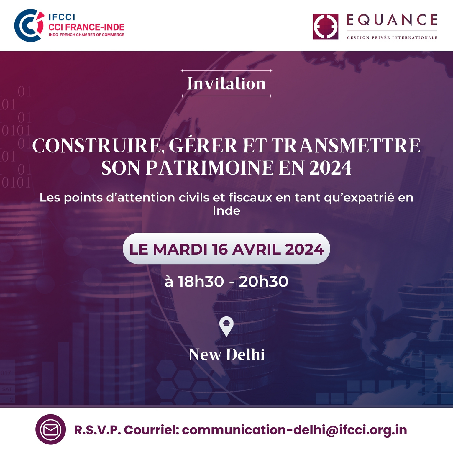 IFCCI et Equance organisent une conférence sur la gestion de patrimoine le 16 avril 2024, à New Delhi.