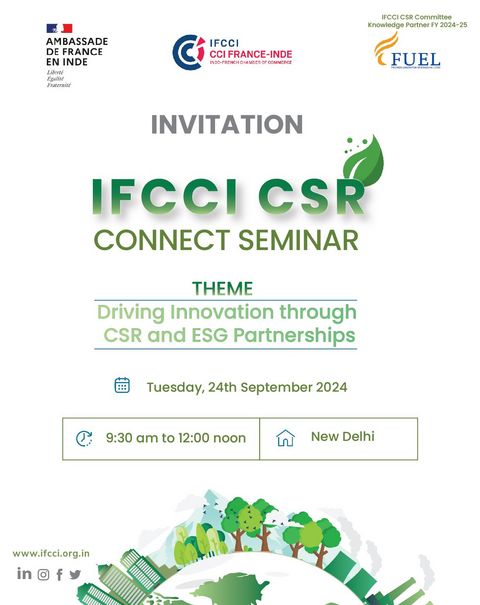 The Seminar will bring together CEOs, CXOs and CSR Heads of French and Indian companies, NGOs, not-for-profit organisations and other relevant stakeholders. The objective of the Seminar is to discuss the CSR strategies of corporates in the evolving landscape of CSR and ESG, to highlight the industry trends and focus areas for this year as well as the role of IFCCI as an aggregator in CSR with an aim to strengthen corporate-NGO partnerships.